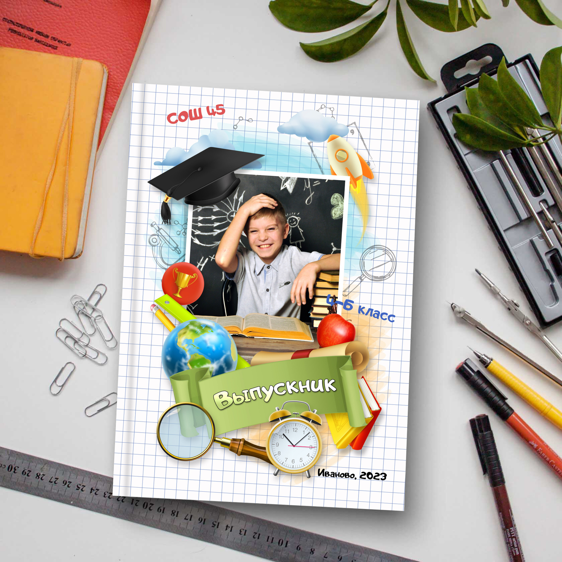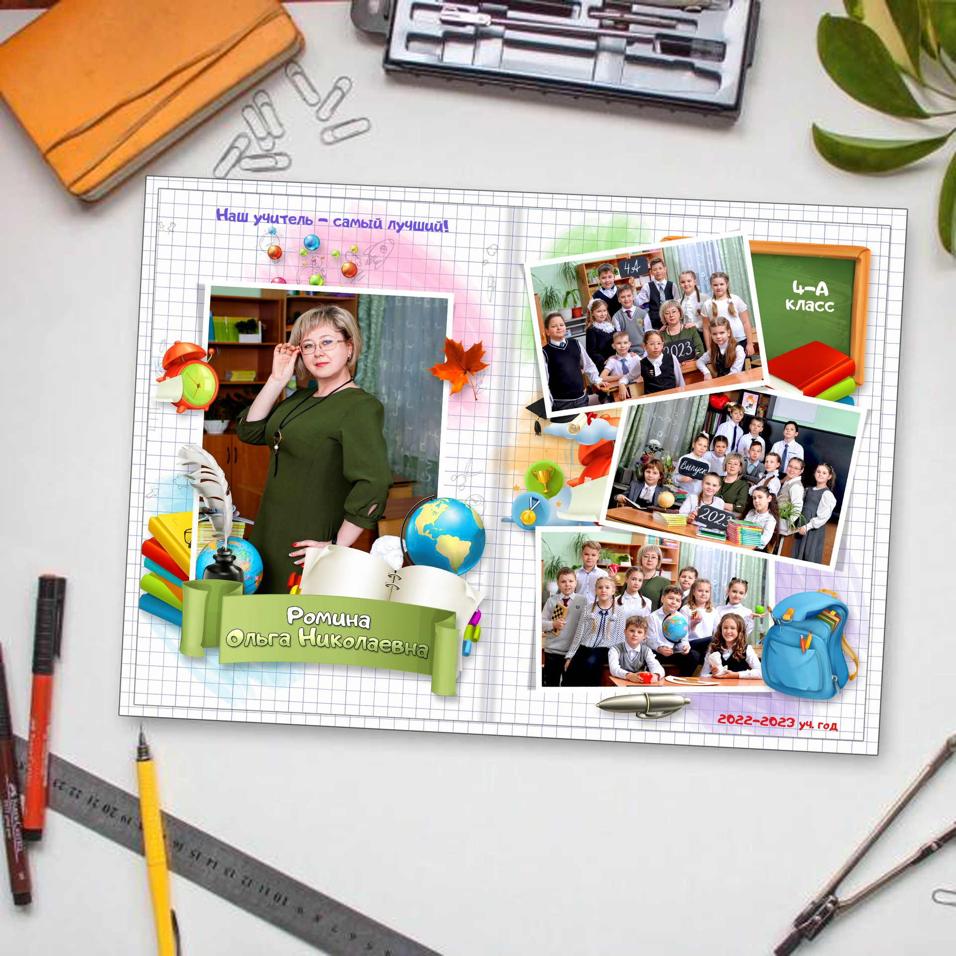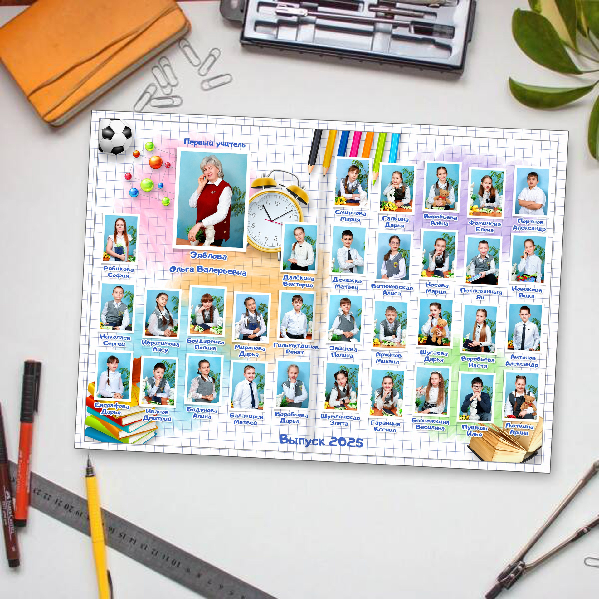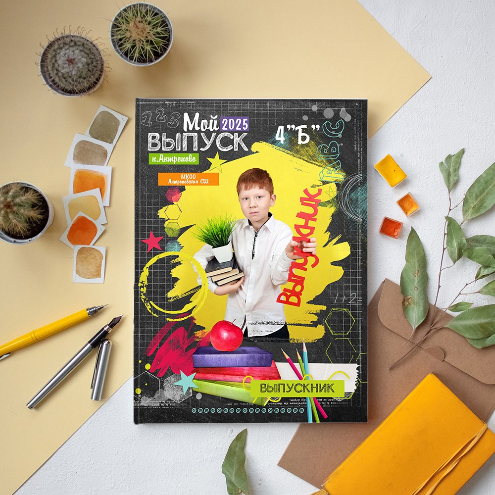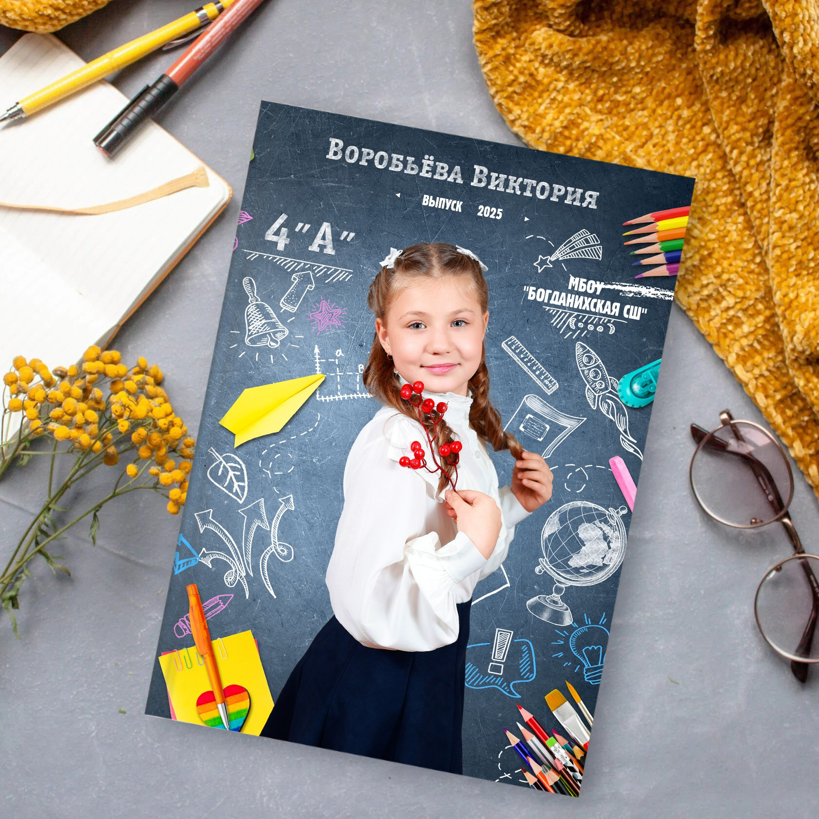 - Альбом ОБЩЕЙ ВЁРСТКИ, с одним персональным портретом для каждого ученика (портрет дублируется в виньетку). Остальное наполнение общее для всего класса