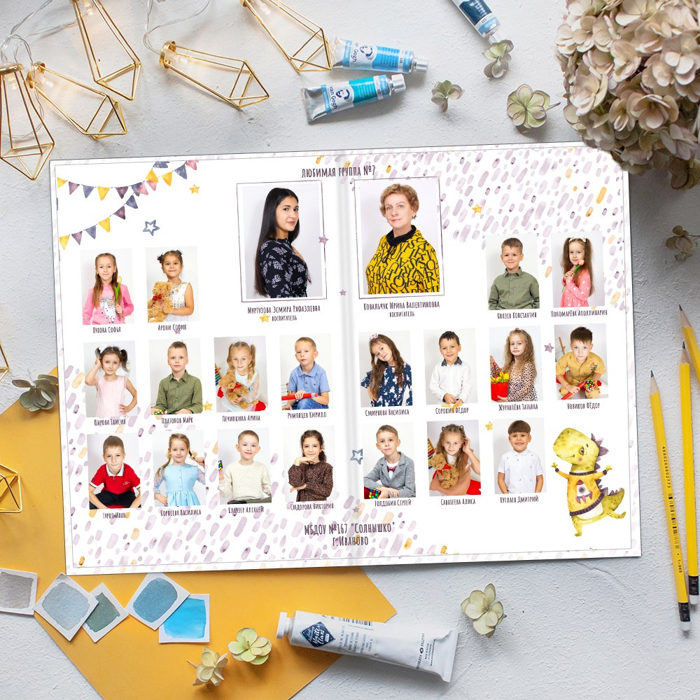 - Дополнительный разворот с групповыми фото (до 6шт-одинаковый у всех, каждый ребенок на 2 фото в составе своей группы) +500р.Делается минимум от 10 шт в заказе.