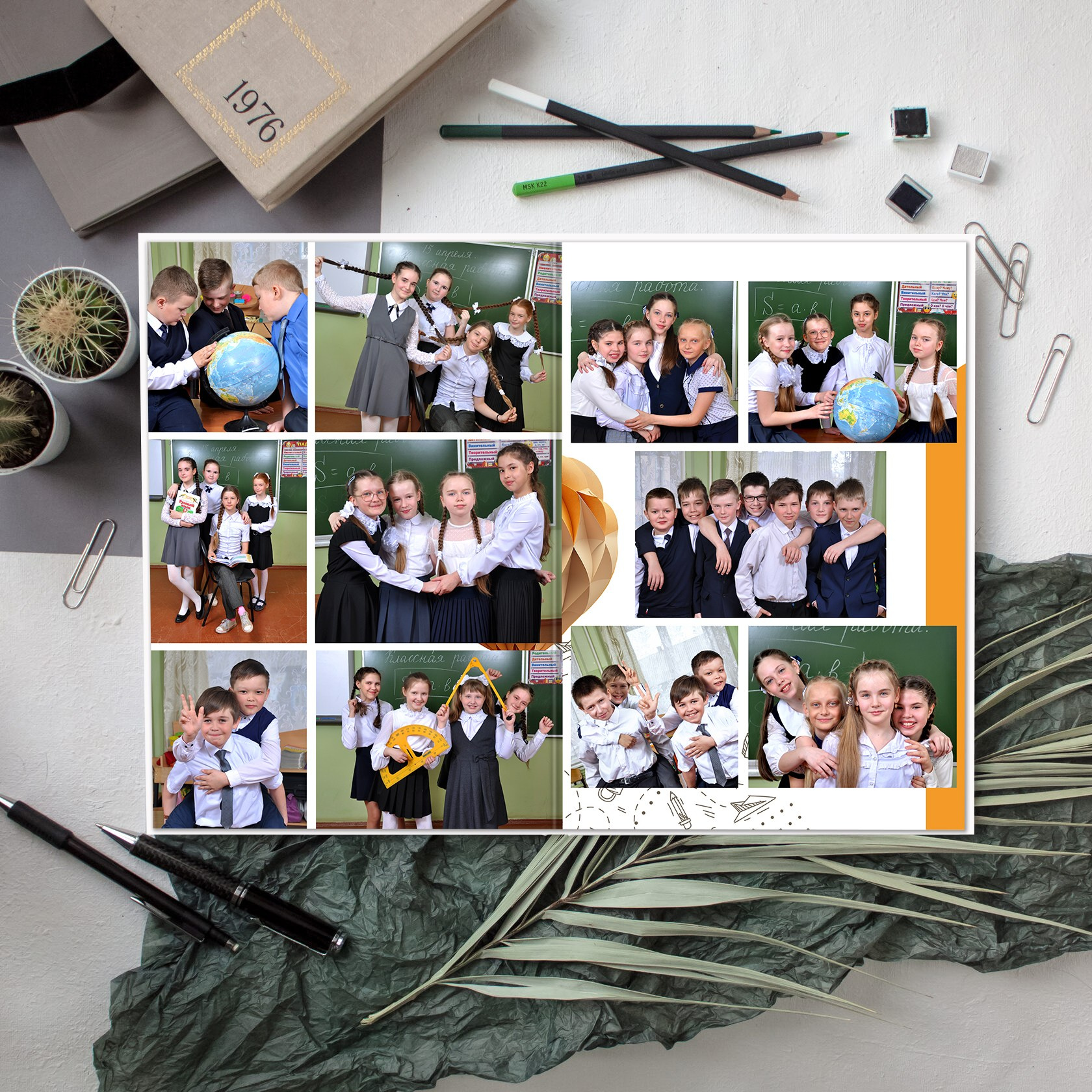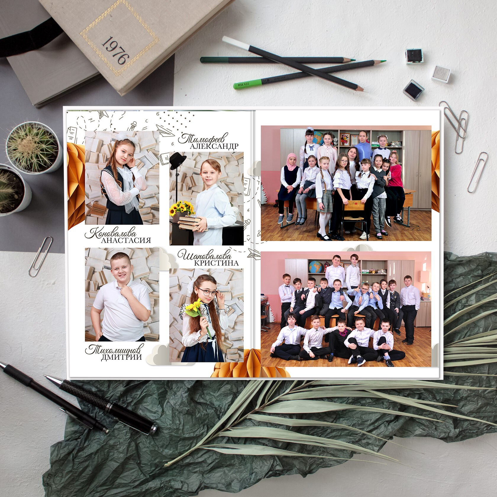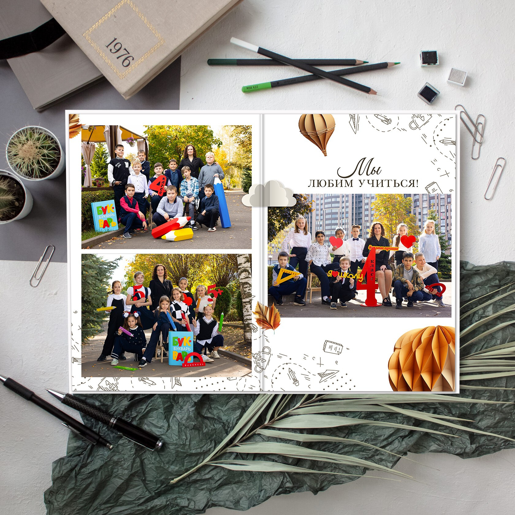- Индивидуальное фото ребенка на 1 развороте 1 шт + фото учителя (+ по желанию можно добавить напутствие)